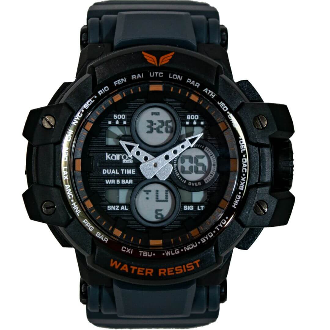 Reloj doble hora, caja y pulso en resina sumergible 5mts, reloj funcional.